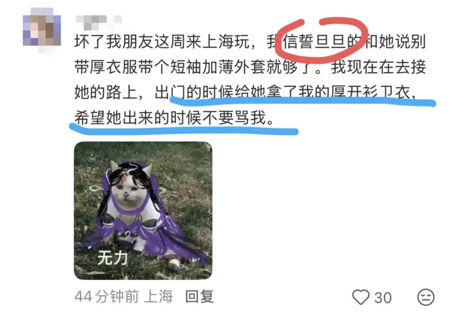 侬好上海(ID:helloshanghai2013)原创编辑,转载请注明来源。部分素材来源@上海市天气 评论来源:微博、小红书各路网友,如有冒犯,敬请联系。