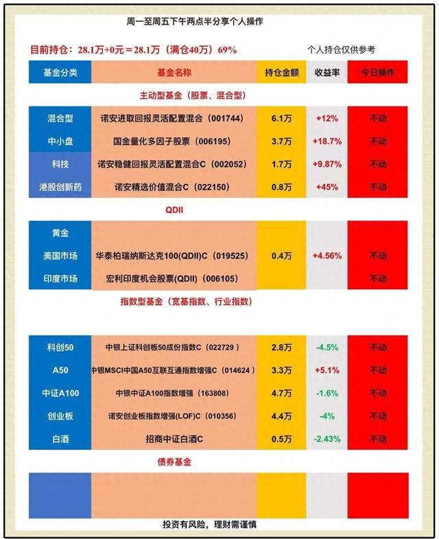 基金是讲究组合的,不可能每一个方向都踏准,但均衡位置总不会因为一个方向踏错而直接拖累总体收益。而且表现弱的不一定会一直弱,创新药去年刚开始配置时也是经历了一个煎熬的探底阶段。