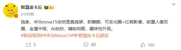 根据该博主的爆料,华为nova 15系列将分别采用直屏和曲屏设计,并配备新款麒麟芯片在影像玩法方面,新机支持AI自拍、辅助构图等功能。此外,该机前置人像双摄,并采用金属中框。